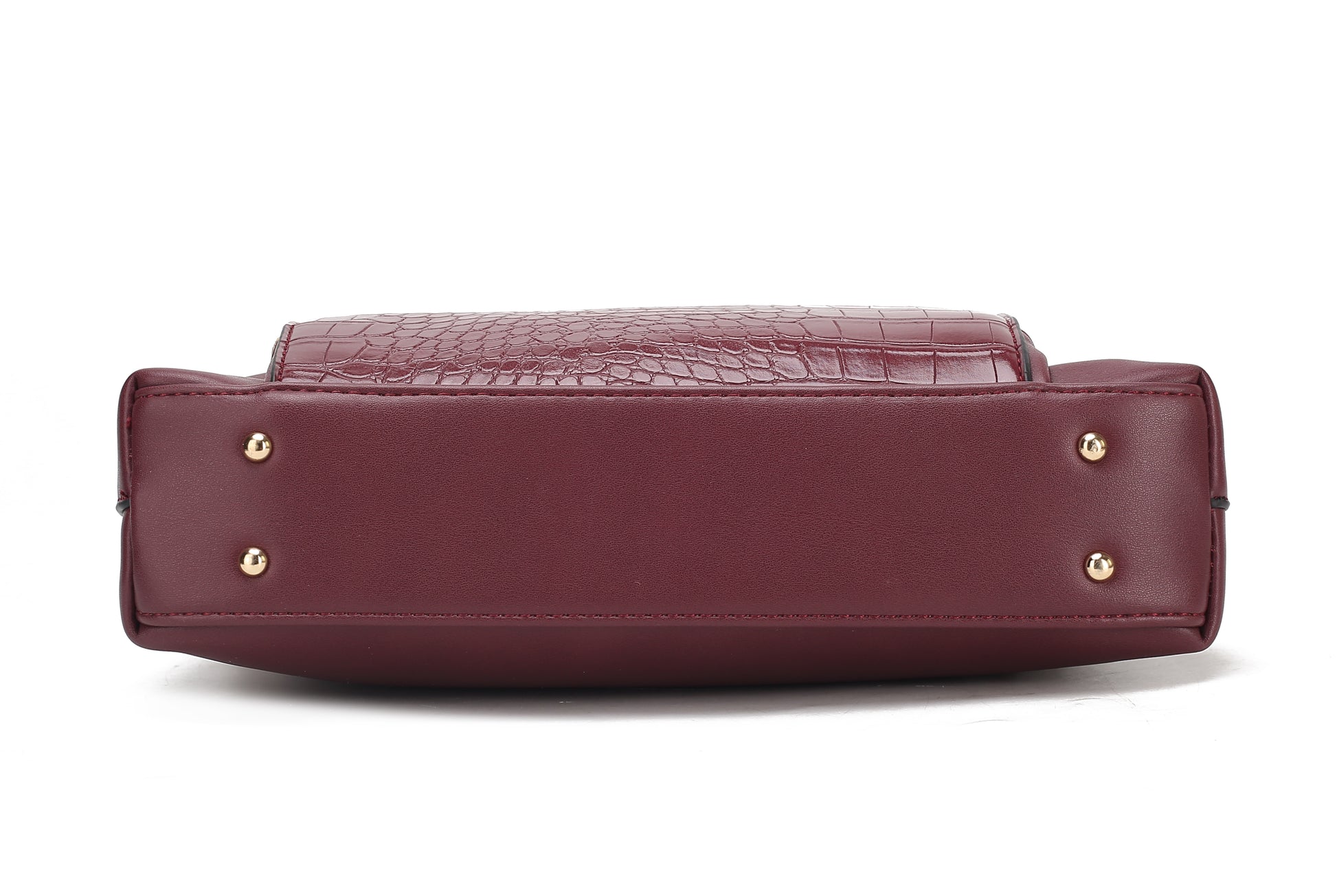 - Our Anayra Handbag/Shoulder Bag effortlessly combines style with versatility. The Anayra Handbag/Shoulder Bag unzips to reveal a fully lined interior with slip pockets and a wall zippered pocket. Wear it on your shoulder/ Handbag or adjust the detachable strap to style it crossbody. The Anayra Handbag has a front pocket crafted from luxe crocodile-embossed vegan leather and a back zippered pocket. The bag is designed with gold-tone embellishments, has a structured silhouette, and a flat base with feet for stability.