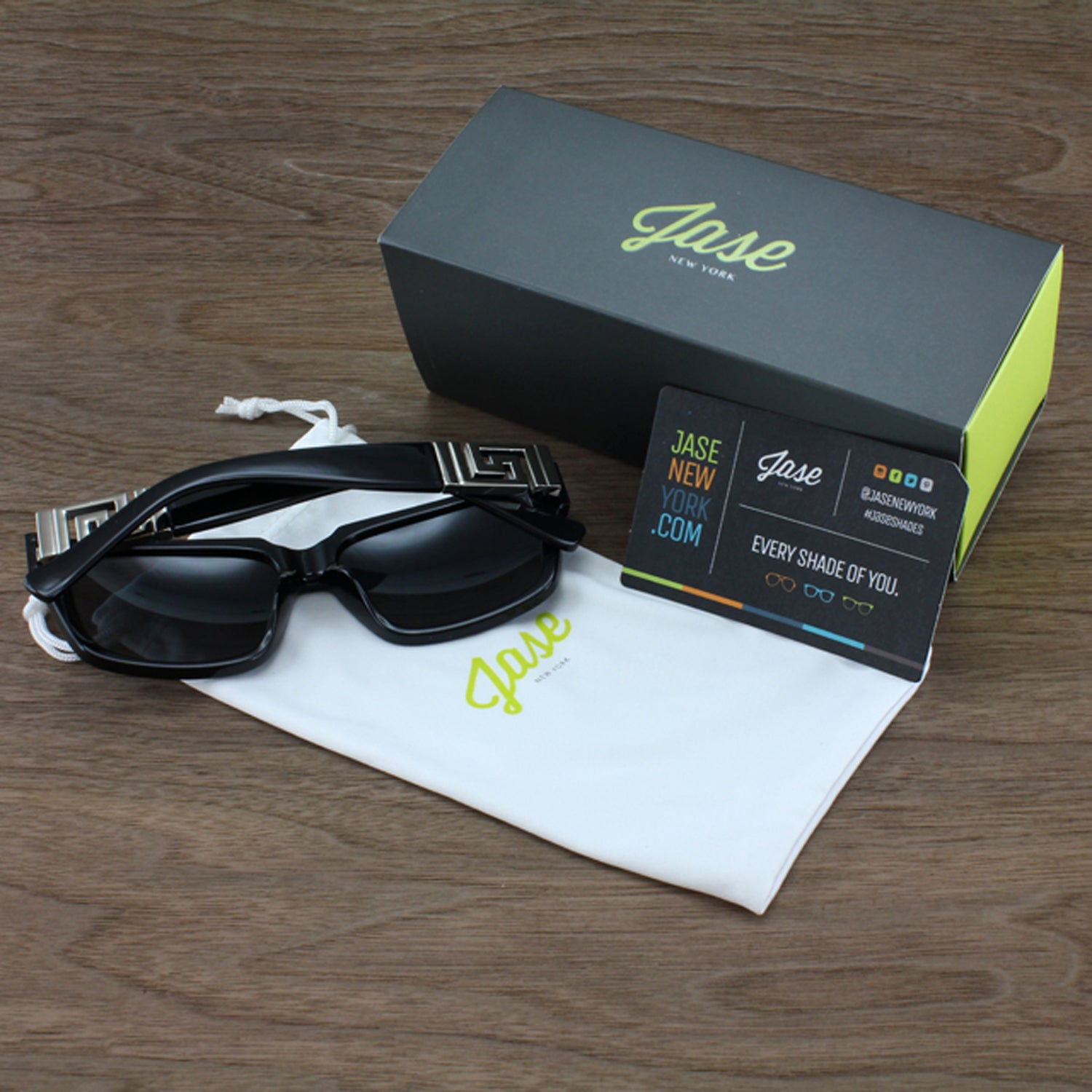 A new classic. Jase New York Victor sunglasses feature a sleek rectangular frame with curved edges and a solid metal greek key design incorporated into the temples. Inspired by the stunning architecture and timeless design of South Beach's iconic Ocean Drive which is renowned for its Art Deco hotels and classic streamline moderne style.