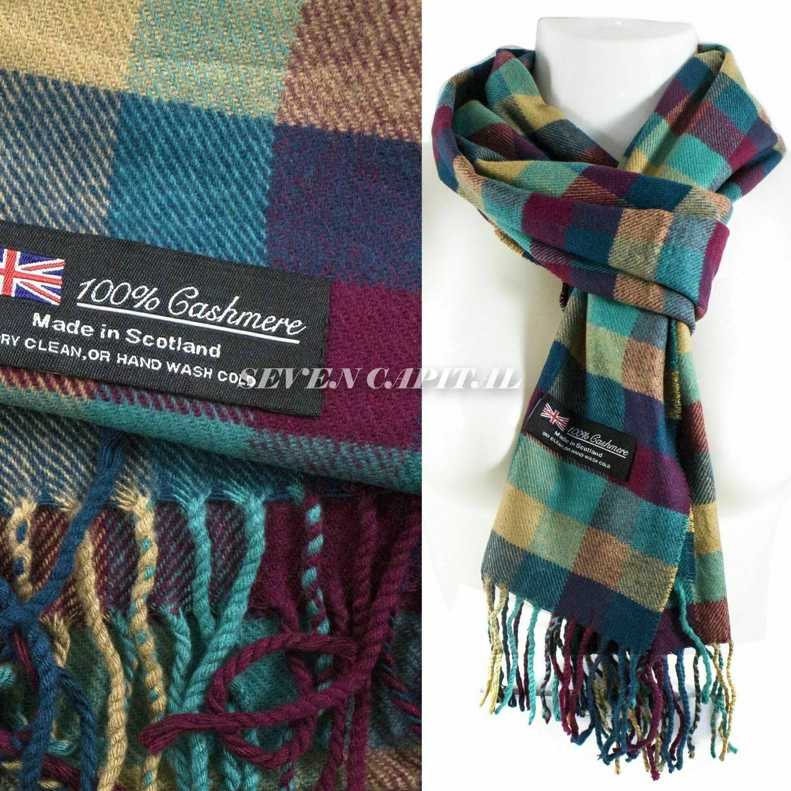 Mens Womens Winter Warm SCOTLAND Made 100% CASHMERE Scarf Scarves Plaid Wool